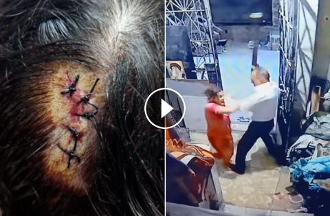 -- مصري يعتدي على زوجته بوحشيه ويضربها بقطعة خشب