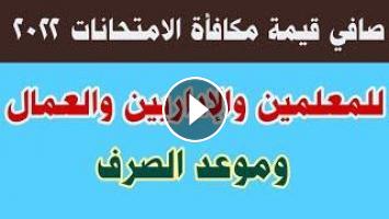 صافي قيمة مكافأة الامتحانات ٢٠٢٢ ، وموعد صرف المكافأة للمعلمين والاداريين والعمال ، للعام الدراسي ٢٠٢١ / ٢٠٢٢ ، رسميا من ، وزارة التربية والتعليم .