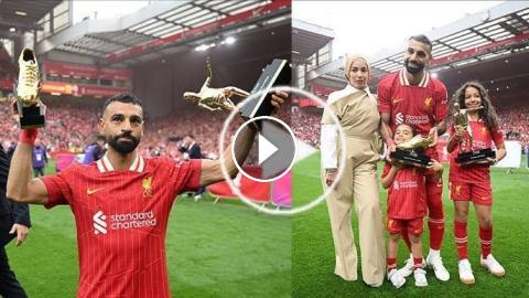 لحظة تتويج محمد صلاح بجائزتي الحذاء الذهبي وافضل صانع العاب في الدوري الانجليزي